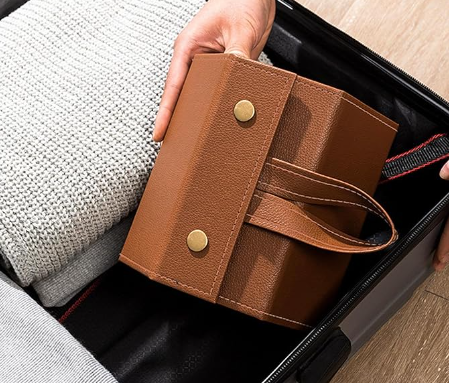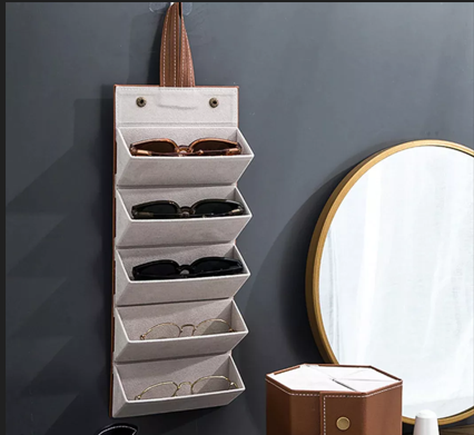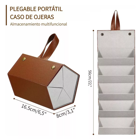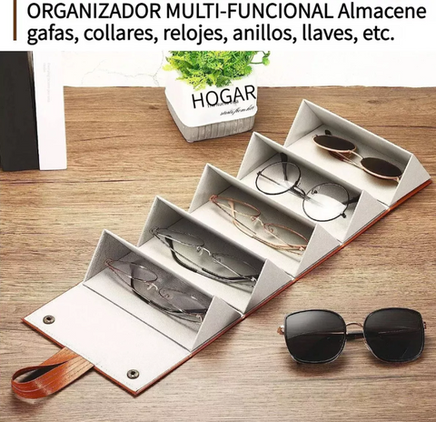 ¡Presentamos el Estuche Organizador Multiusos para Gafas! Con 5 compartimentos plegables, este elegante accesorio en poliuretano tipo cuero mantiene todas tus gafas y accesorios seguros y a mano. ✨ Perfecto para gafas de sol, graduadas, relojes y joyas, su diseño colgante y compacto es ideal para el hogar o viajes.